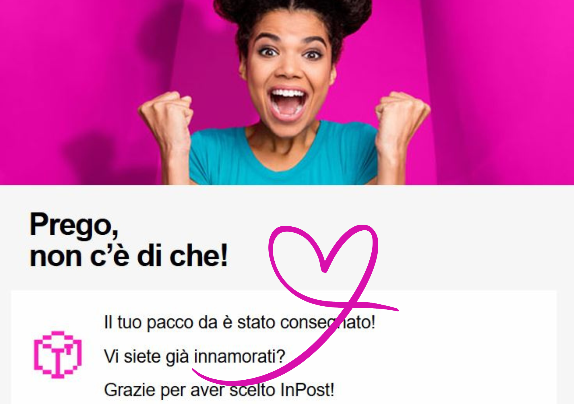 Anche le mail transizionali hanno bisogno di un pensiero creativo. InPost lo ha fatto. Come copywriter freelance non posso che approvare questa scelta.