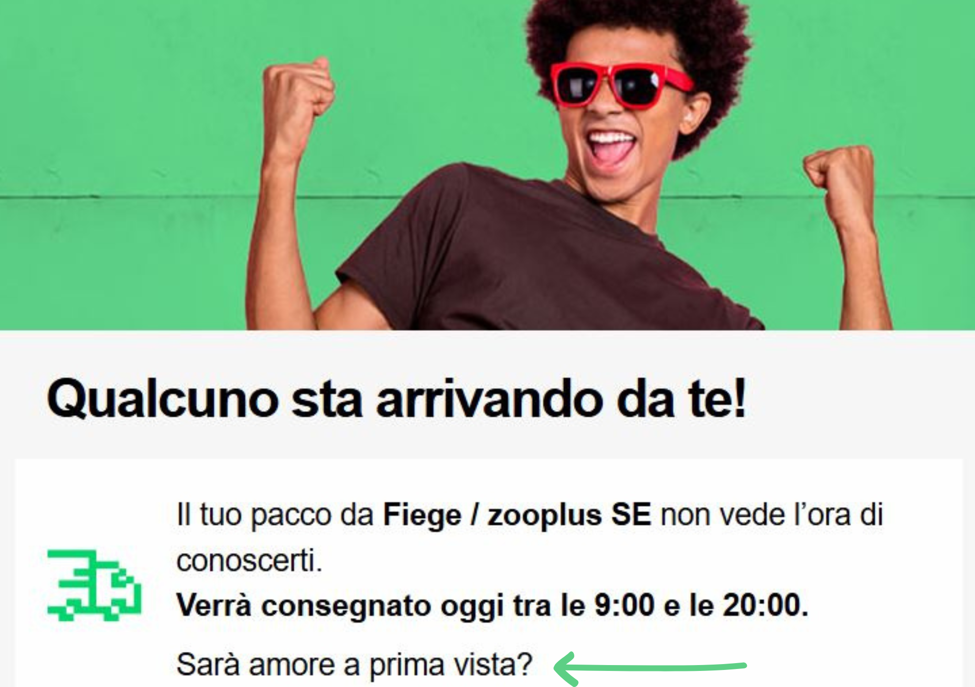 Le mail transizionali di questo tipo, quelle che ti tengono aggiornato sullo stato della spedizione, hanno già un tasso di apertura molto alto. E per forza! Tutti vogliamo sapere a che punto è la nostra spedizione.